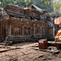 Wat Phu Champasak je unikátní zřícenina z období Khmerské říše. Je prý nejstarším chrámem v Laosu, to jsem si nemohl nechat ujít. Abych se dostal k hlavní svatyni, kterou dnes užívají místní buddhisté, musel jsem zdolat snad tisíc starodávných schodů, ty drží pohromadě asi jen díky kořenům okolních stromů.